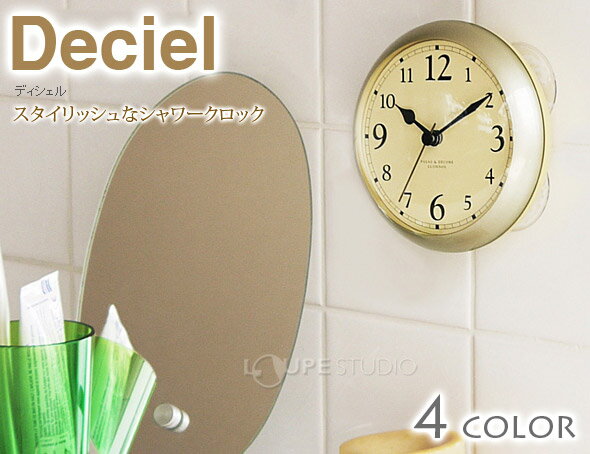 《全4色》PalaDec Deciel シャワークロック ディシェル 【パラデック 雑貨 バスクロック インテリア 風呂 お風呂 時計 防滴 かわいい おしゃれ ギフト 壁掛け時計 置き時計 リビング 台所 吸盤 上品 キッチン スタンドクロック 浴室 バスルーム インスタ映え 】