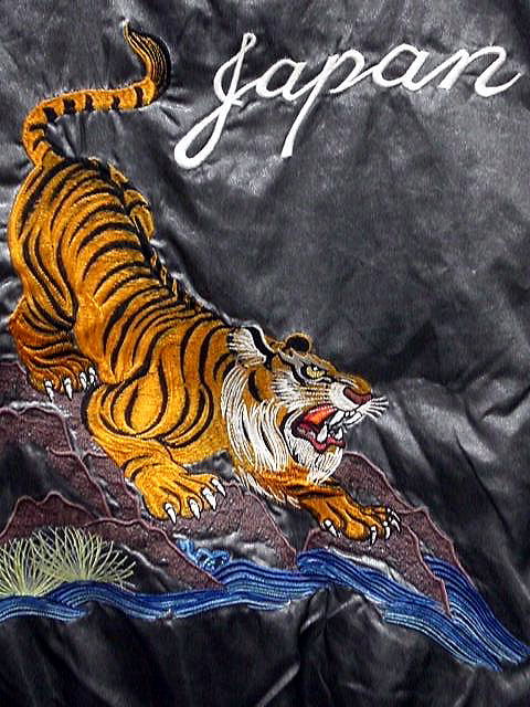 スカジャン ヴィンテージ加工 虎 日本製本格刺繍のスカジャン 2L サテンの生地にヴィンテージ加工を施して「長年愛着をもって着こなしたスカジャン」といった雰囲気に仕上げました。