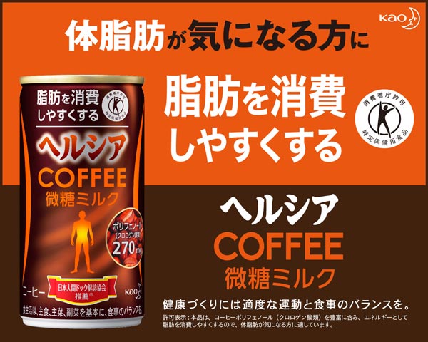コーヒー飲料で唯一の脂肪を消費しやすくする特定保健用食品(2013年10月現在、ヘルシアシリーズ)。